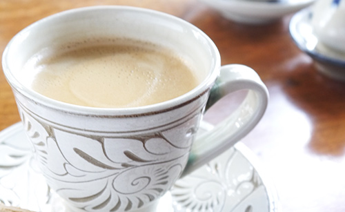 炭火焙煎したペルー産のオーガニック豆を使用お客様がお選び頂いたお好みの「やちむんカップ」でお召し上がりいただけます。